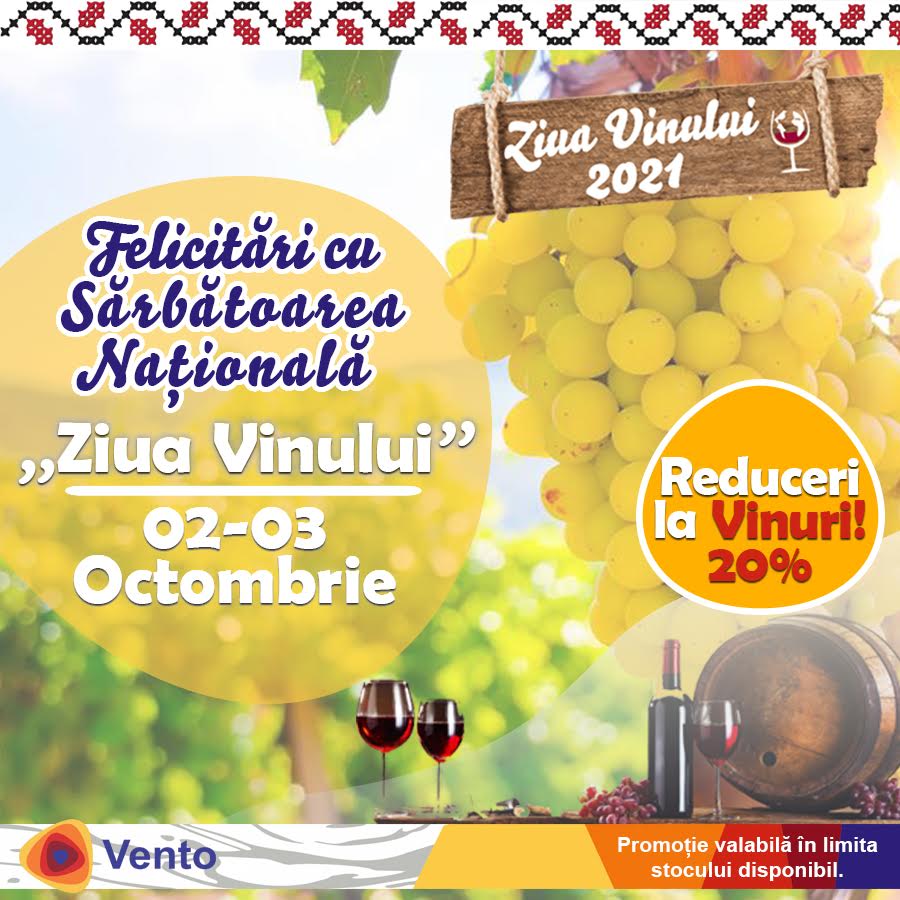 🍷❤️02-03 Octombrie - Felicitări cu „Ziua Națională a Vinului”⛽️🚘 👉Reduceri la vinuri în toate stațiile VENTO din 02.10 pînă pe 17.10.2021! #Vento_mereu_aproape_mereu_cu_plăcere❤️