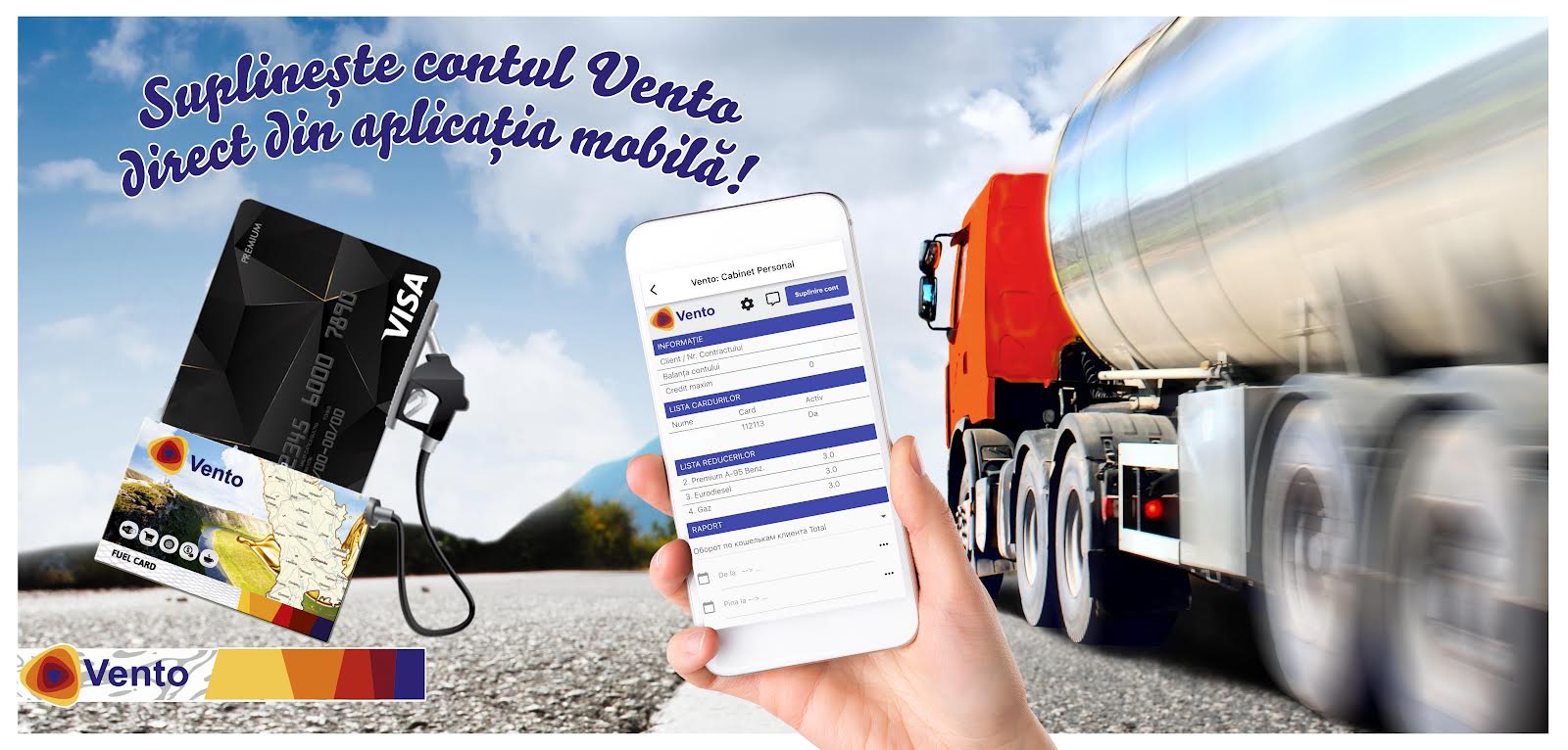Acum, ai posibilitatea de a suplini Contul Cardului de Combustibil #Vento direct din Aplicație - #simplu, #sigur și #comod!