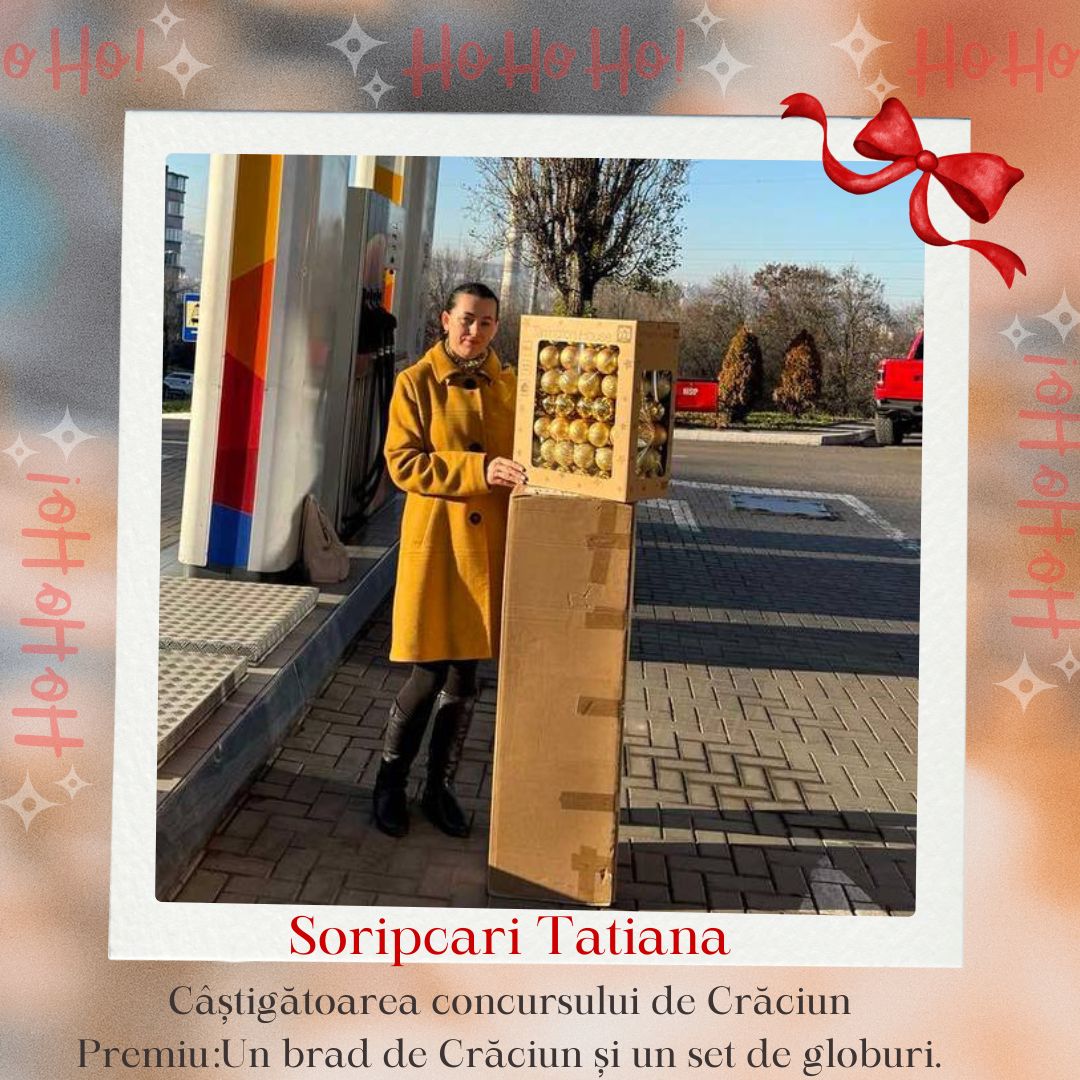 Câștigătoarea Concursului: „Câștigă un brad de Crăciun și un Set de globuri de la Vento", care s-a desfășurat în perioada 01.12.2025-10.12.2025 pe pagina oficiala de Facebook VENTO-MOLDOVA este Tatiana Soripcari.