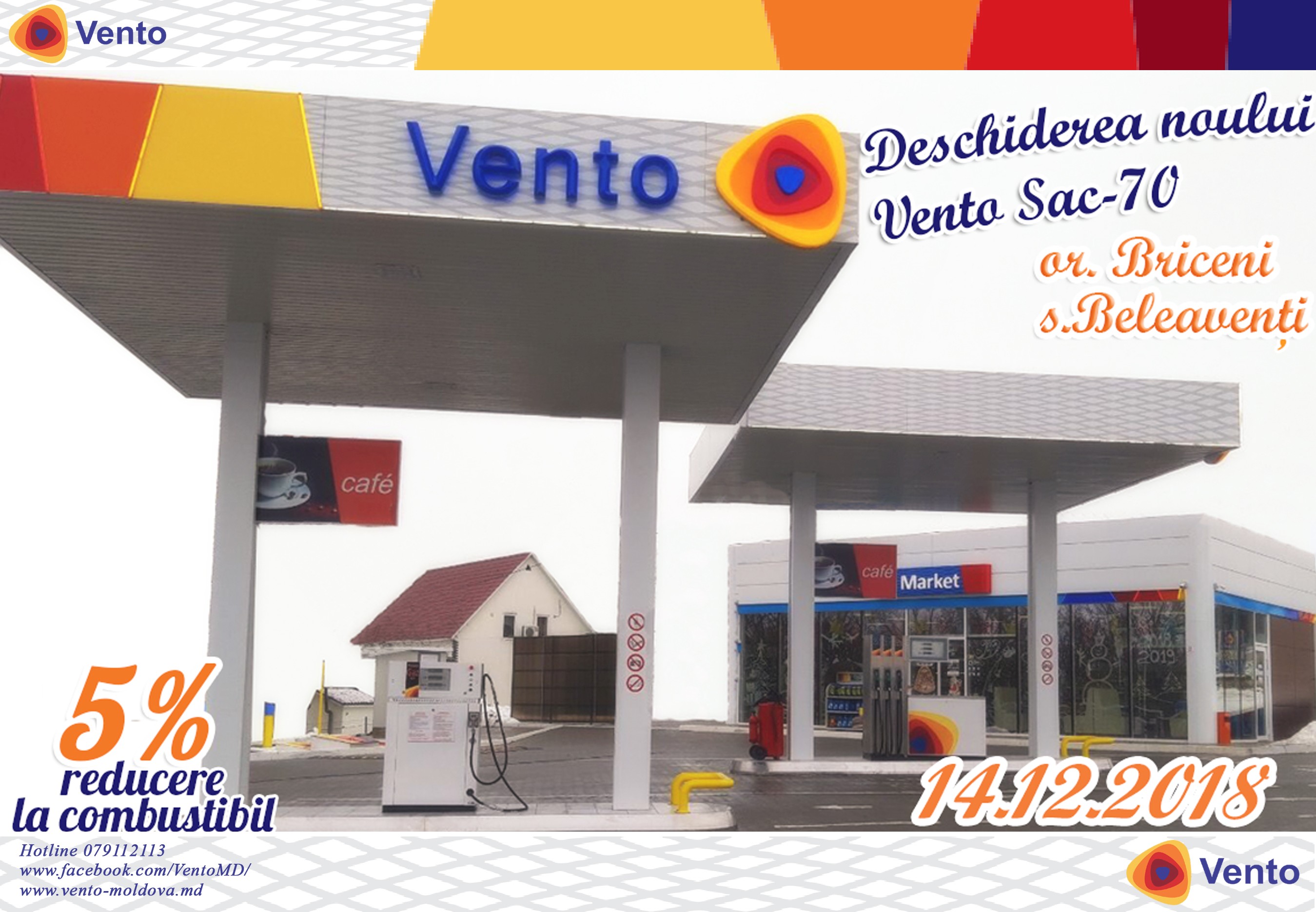 14.12.2018 - Vino și tu la deschiderea noului Vento SAC-70 or. Briceni, s. Beleavinți, și profită de 5% reducere la carburanți!!