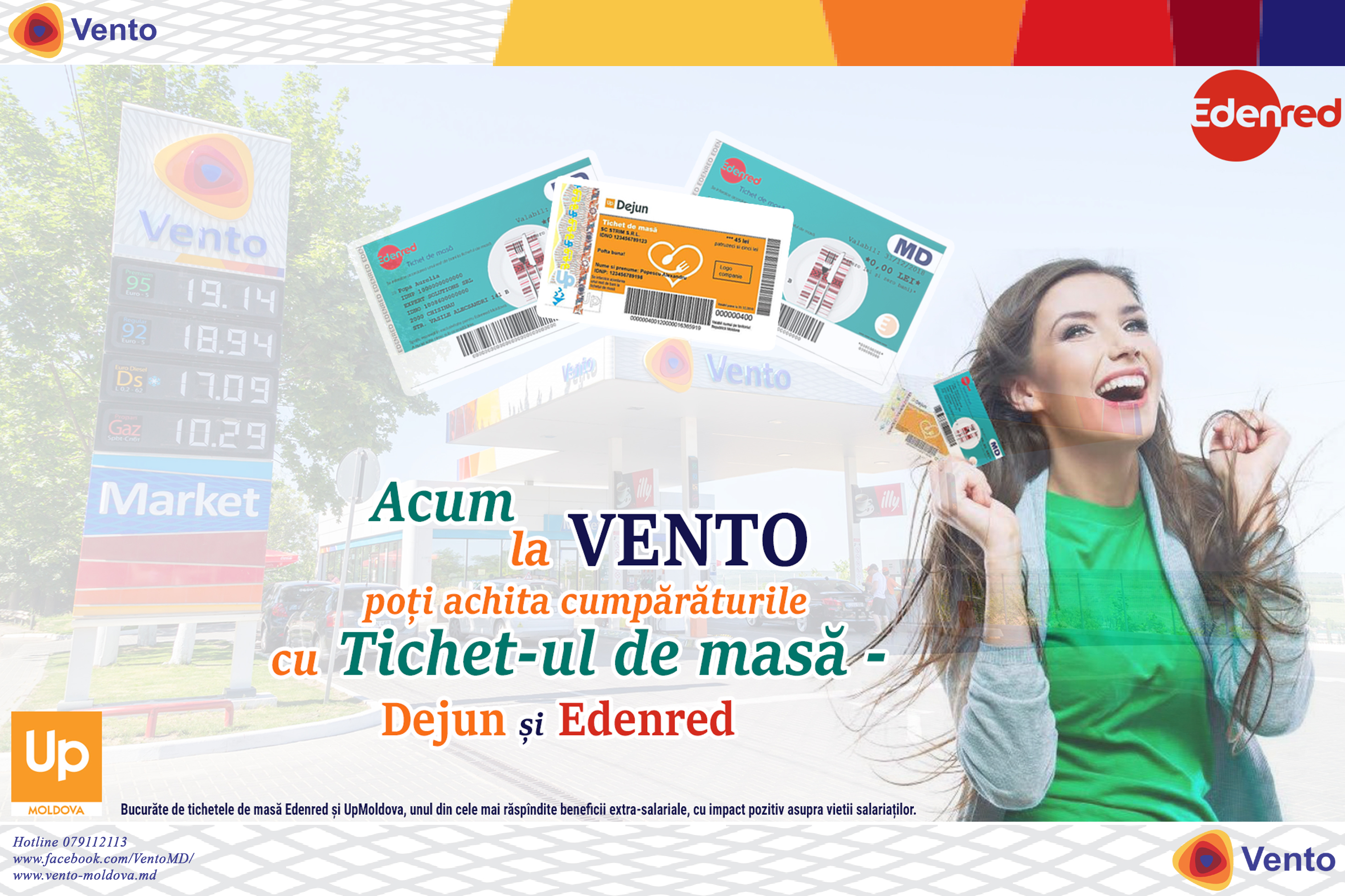 👩👩👧👧Pentru că ținem la clienții noștri, la 🛣Vento - Moldova poți face cumpărături cu Tichetul de masă: Edenred și Up Moldova🍵🍰🍫.👍Cumpără ceea ce dorești, plătește exact cît trebuie👍🤗Gustă din beneficiile tichetelor de masă acum în toată rețeaua Vento - Moldova🤩