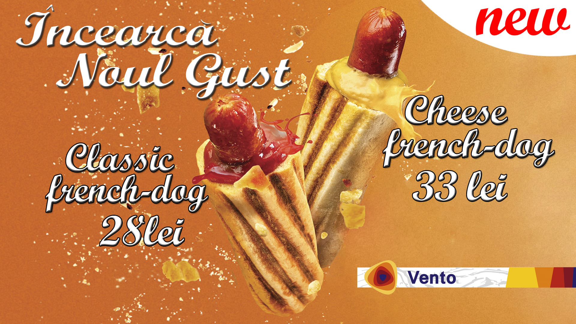Te așteptăm la Vento să încerci noul cheese french-dog🌭 cu adaos de cașcaval la un preț de doar 33lei pentru unul mic și 38lei pentru unul XXL!