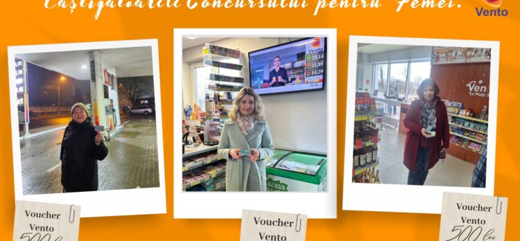 Felicitări câștigătoarelor noastre norocoase! Voucher Vento în valoare de 1000 lei – Doamna Anastasia Corobov! Voucher Vento în valoare de 500 lei – Doamna Larisa Serioghina! Voucher Vento în valoare de 500 lei – Doamna Natalia Telipan! Mulțumim tuturor pentru participare și vă invităm să urmăriți pagina noastră pentru surprize excepționale de la Vento.
