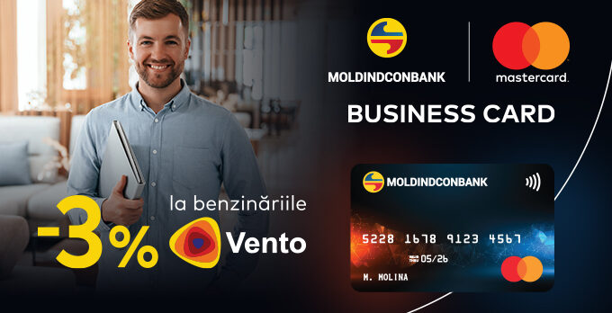 Cu Business Card de la Moldindconbank, beneficiezi de o REDUCERE de 3% în rețeaua de benzinării Vento!