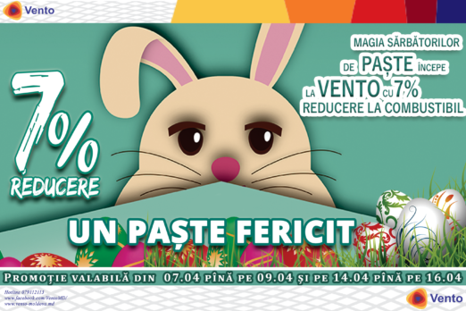 🤔Magia Sărbătorilor de Paște începe la Vento cu 7% reducere la combustibil! 🍟✨👉Sunt zile, % reducere, doar cu CARD VENTO!✔‼⛽Obține cardul de reducere în orice stație VENTO!