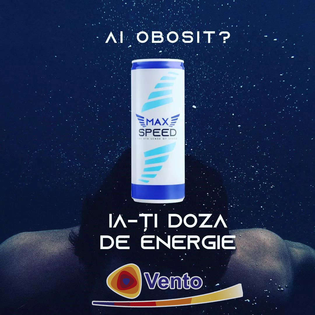 Max Speed - mic, practic şi uşor de luat cu tine oriunde. Vino în Stațiile Vento, ia-ți impulsul de care ai nevoie atunci când te simți obosit şi dă start noilor provocări.