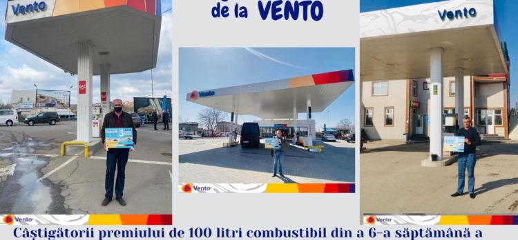 Câștigătorii premiului de 100 litri Combustibil din a 7-a săptămână a promoției (29.03 – 05.04.2021). Sincere felicitări Grigor Alexandru, Adam Rodion, Timbur Svetlana. Mulțumim că ați ales Vento!