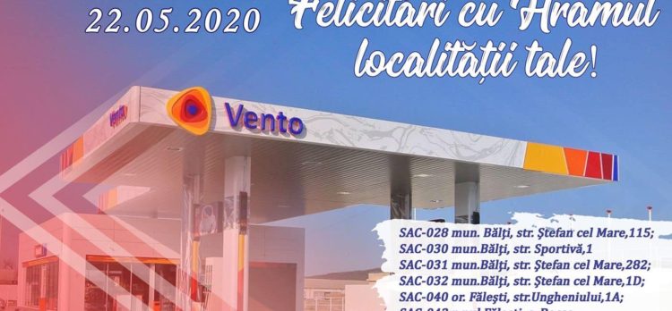 😍22.05.2020 ➡️Vento te Felicită cu Hramul localității tale! ⛽️SAC-028 mun.Bălți,str.Ștefan cel Mare,115;🚗 ⛽️SAC-030 mun.Bălți str.Sportivă,1;🚗 ⛽️SAC-031 mun.Bălți str.Ștefan cel Mare 282;🚗 ⛽️SAC-032 mun.Bălți str.Ștefan cel Mare,1D; 🚗 ⛽️SAC-040 or.Fălești,str.Ungheniului ,1A;🚗 ⛽️SAC-042 r-nul Fălești,s.Bocșa;🚗 ⛽️SAC-064 or.Dondușeni,str.Independentei 2B.🚗 Prieteni,să vedem cine sărbătorește hramul localității pe data de 22.05.2020?! La Mulți Ani !!!🥳❤️🥰
