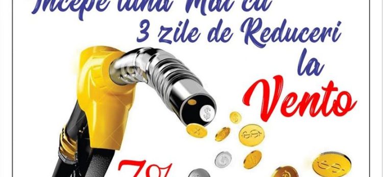 Începe luna Mai cu 3 zile de reducere doar la VENTO⛽️! În perioada 01.05-03.05.202, ⛽️ îți oferă 7 % reducere la Combustibil⛽️! *de ofertă pot beneficia deținători de ⛽️!
