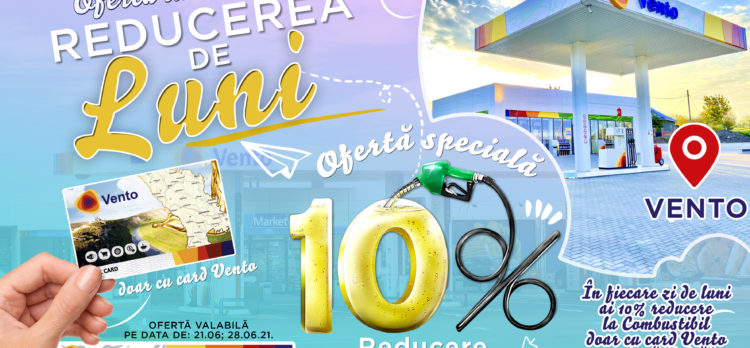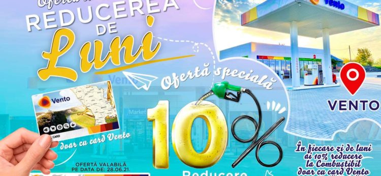 Wawaw! Luna Iunie vine cu surprize plăcute de la Vento-Moldova -10% reducere la combustibil în fiecare zi de Iuni Ofertă valabilă doar în Iunie pe data: 28.06.2021, pentru toți deținătorii de card Vento, persoane fizice Obține card de reducere Vento în orice benzinărie VENTO 24/7