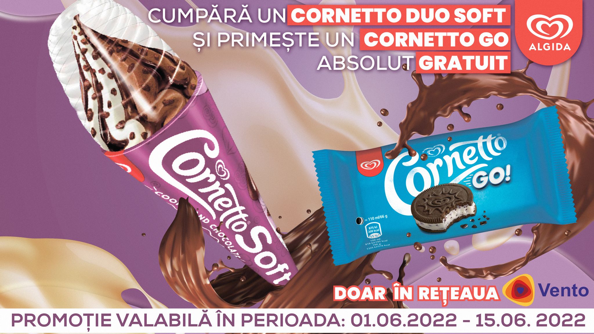 Doar în rețeaua Vento, cumpără un Cornetto Duo Soft și primește un Cornetto Go absolut Gratuit!