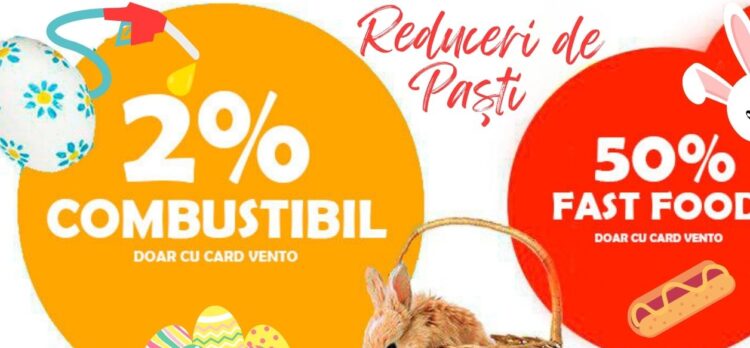 Sărbătorește Paștele cu Vento!În această perioadă specială, la Vento ai parte de oferte speciale:-2% reducere la combustibil,-50% reducere la fast food! *Ofertă valabilă doar cu Card Vento!Hai să facem sărbătorile și mai speciale împreună! #Vento_mereu_aproape_mereu_cu_plăcere