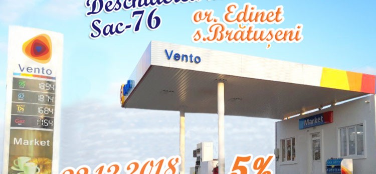 22.12.2018 – Vino și tu la deschiderea noului Vento Sac-76 or. Edineț, s. Brătușeni, și profită de 5% reducere la carburanți!!⛽