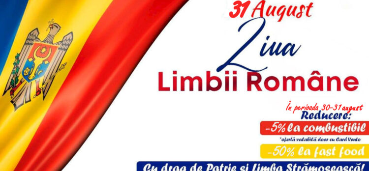 Pe 31 august, cinstim Limba Română – comoara care ne unește! La Vento, te așteaptă oferte speciale: -3% reducere la combustibil -50% reducere la fast food . Ofertă valabilă pe 30 și 31 august 2025, cu Card Vento persoană fizică. Vino să sărbătorim împreună și să ne bucurăm de valorile ce ne unesc!