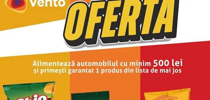 Alimentează-ți mașina și bucură-te de cadouri delicioase! La fiecare alimentare de minimum 500 lei, primești garantat un snack savuros din selecția lunii! În septembrie: Chipsuri Chio (Smântână & Ceapă sau Paprika) În octombrie: Arahide Nutline În noiembrie: Chio Hula Hoops (Cheese sau Barbecue) Promoție valabilă doar cu Card Vento, în perioada 01.09.2025 – 30.11.2025. Alimentează […]