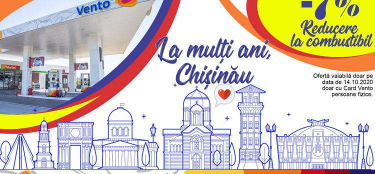 Только 14 октября 2020 года, в день нашего любимого города Кишинев, Vento дарит вам -7% скидки на все виды топлива.