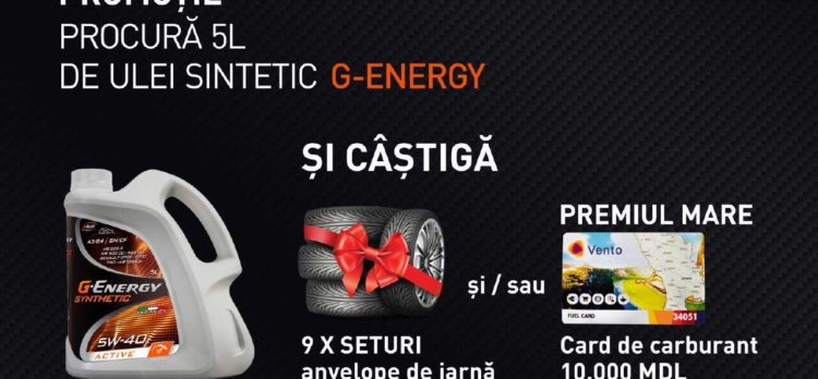 Компания «Calbor Grup» SRL и Vento-Moldova запускают новую акцию под названием «Готовимся к зиме вместе с G-Energy!» Еженедельно у вас есть возможность выиграть комплект зимних шин, а также поучаствовать в розыгрыше главного приза – топливной карты Vento на сумму 10 000 леев. При покупке синтетических масел G-Energy на заправках сети АЗС Vento клиенты имеют возможность […]