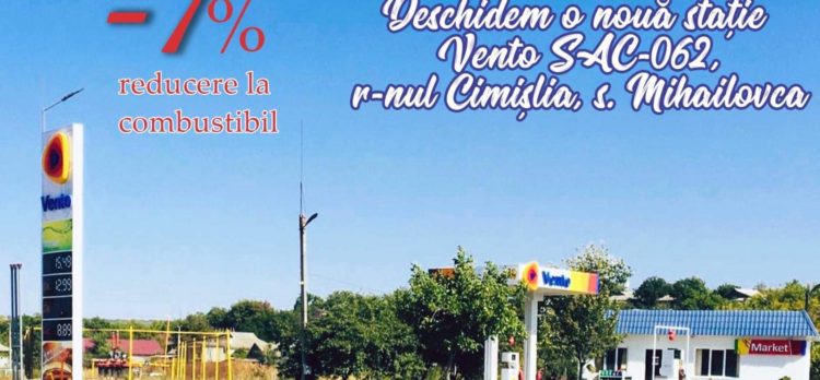 В пятницу 25.09.2020 приходи на открытие АЗС SAC-062 в Чимишлийском районе, с. Михайловка и получи скидку в -7% на топливо! Участниками акции могут стать только физические лица, обладатели карты Vento. Стать обладателем карты можно на любой станции Vento. Предложение действует в период с 25.09.2020 по 27.09.2020 включительно!